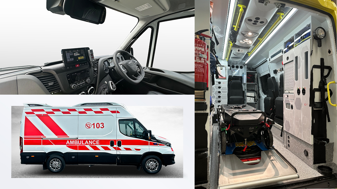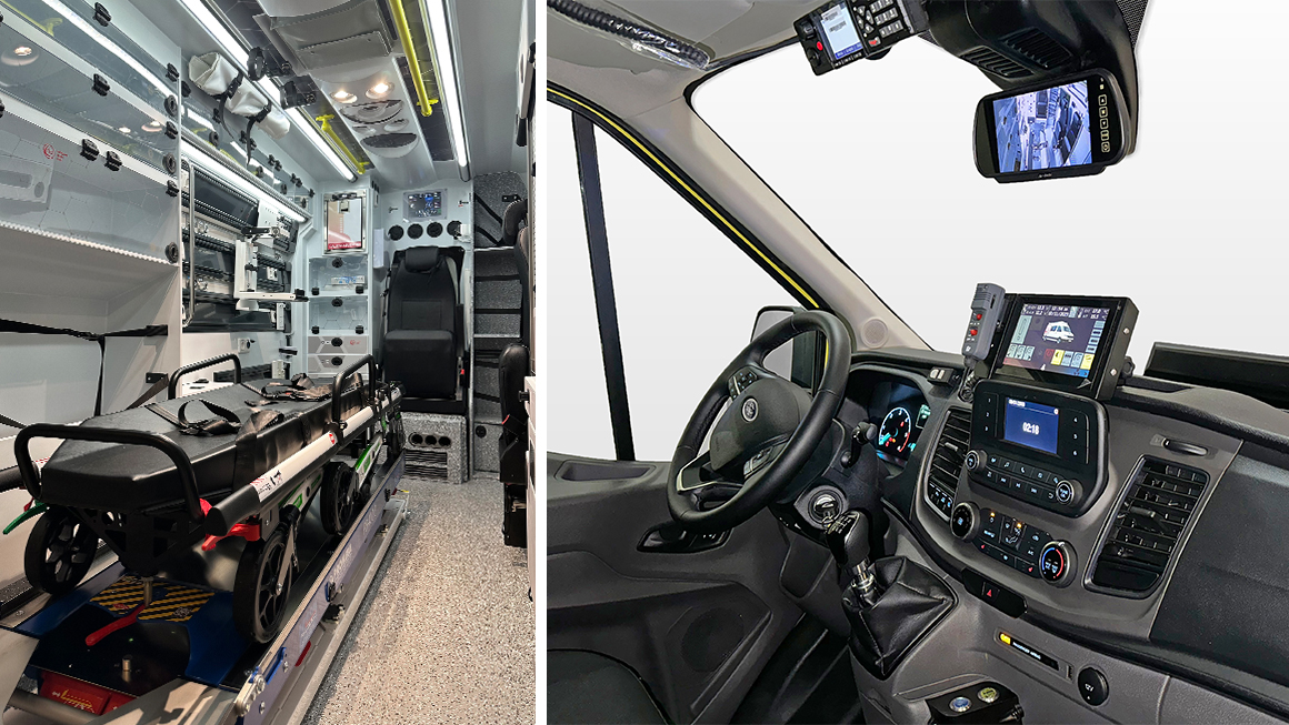 Designed and equipped for the transport, advanced treatment, and monitoring of patients in accordance with the EN1789 standard. As a special requirement, it features clearance around the head of the stretcher which, together with the lateral movement of the stretcher base, allows for patient care from any position.