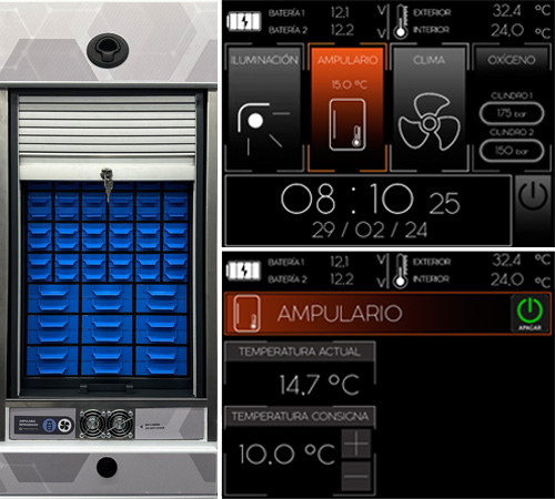 Perfect Integration: It is installed directly into the ambulance furniture, optimizing space and facilitating access.