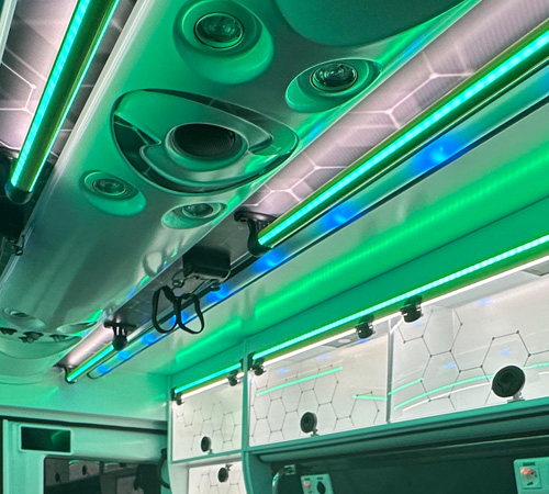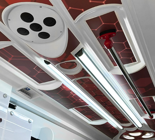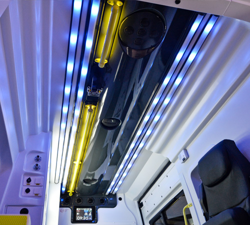 Indirect lighting is also available in recommended use areas to improve ergonomics and prevent accidents, such as the grab bars or the passenger compartment access step, among others.