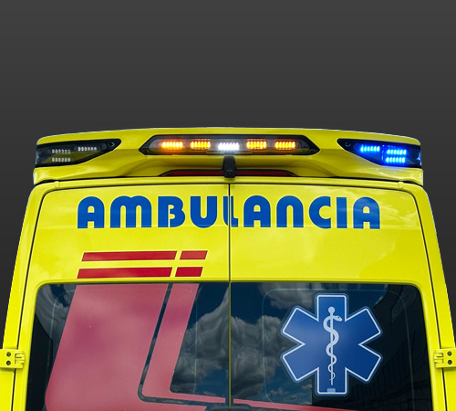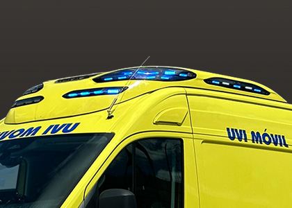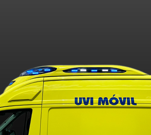 Following the RLAF1 philosophy, it is located in the upper area of the ambulance, preventing the opening of the doors from eclipsing the rear and rear side cover lights. It also integrates rear area lighting (work light) and optionally amber or two-tone directional light bar, changing the lights in the latter case of color, depending on whether the vehicle is stopped or running.