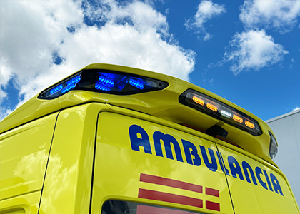 To maintain lighting in the entire environment of the patient compartment, Type C and Type B ambulances with bodies according to the new requirements of the European Standard EN 1789:2020 are equipped with a set of white LED spotlights on the lower perimeter of the vehicle, which complement the lighting of integrated area in the spoilers RLAF1, RLAF2, RLAF3 and RLAF4. This double system achieves excellent lighting at short and medium distances from the ambulance work area, in addition to improving the visibility of the vehicle when it is stopped.